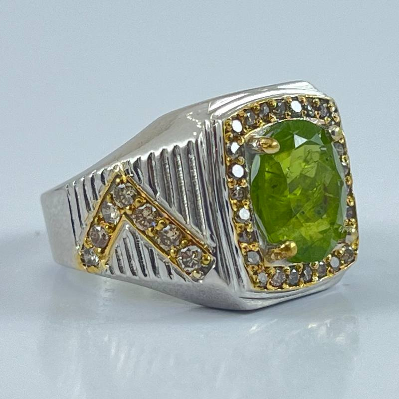 انگشتر نقره با سنگ زبرجد طبیعی و مخراج نگین اتمی{کد:AMP.14}