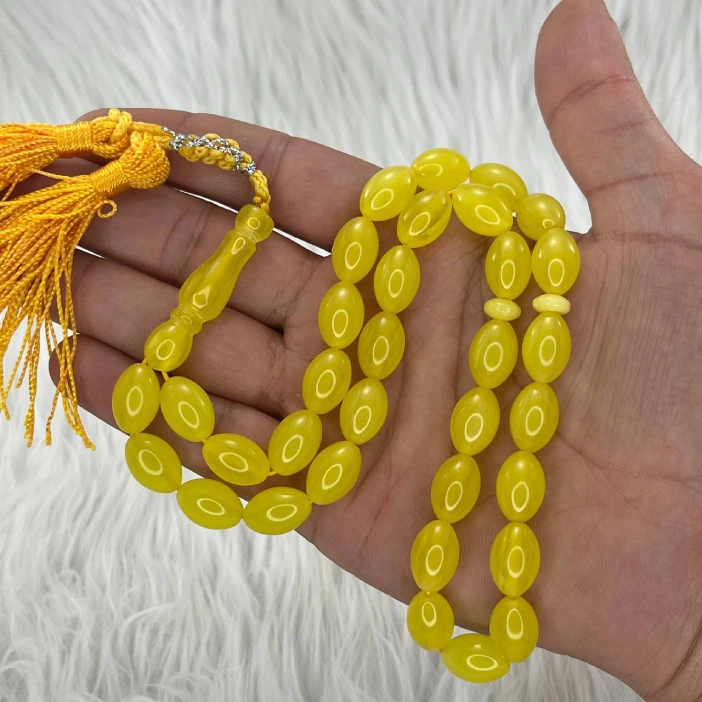 | نام محصول | تسبیح پودر کهربا ۳۳ دانه زرد |